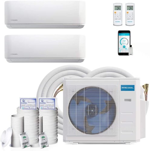 This dual zone, powerful unit comes with two – 18000 BTU air handlers.