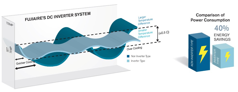 • Constant Cooling: The inverter ACs maintain a constant temperature with variable speed control, unlike regular units that switch on and off frequently. You will not have to face a sudden change in temperature, the room will always be cool and comfortable regardless of the day.