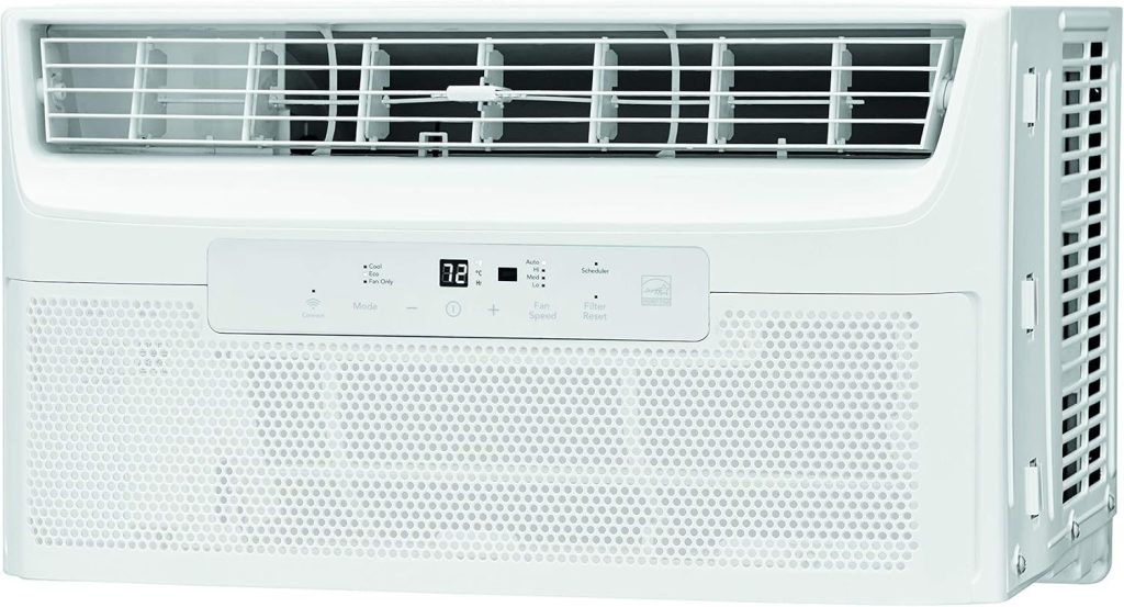 To complete our list we have a more conventional window AC unit that is suitable to people with smaller rooms or smaller budgets but still want decent efficiency. The Frigidaire 6,000 BTU Window Air Conditioner (model FFRE or similar) is a conventional unit with a high EER that shows that you do not have to have inverter technology to save energy in a small room.